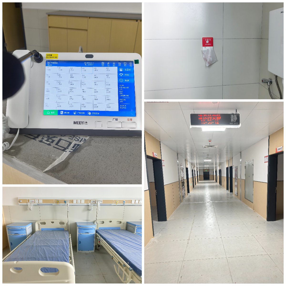 系统部署覆盖病房床头、护士站、病区走廊、卫生间等全场景,通过一体化终端设计,实现患者与医护人员、医护人员之间的无缝互联互通。针对医院日常护理、紧急救治、院感防控等多元需求,美一以数字化技术为核心,兼顾实用性、安全性与便捷性,完美适配兴国嘉和医院的诊疗流程与管理规范。