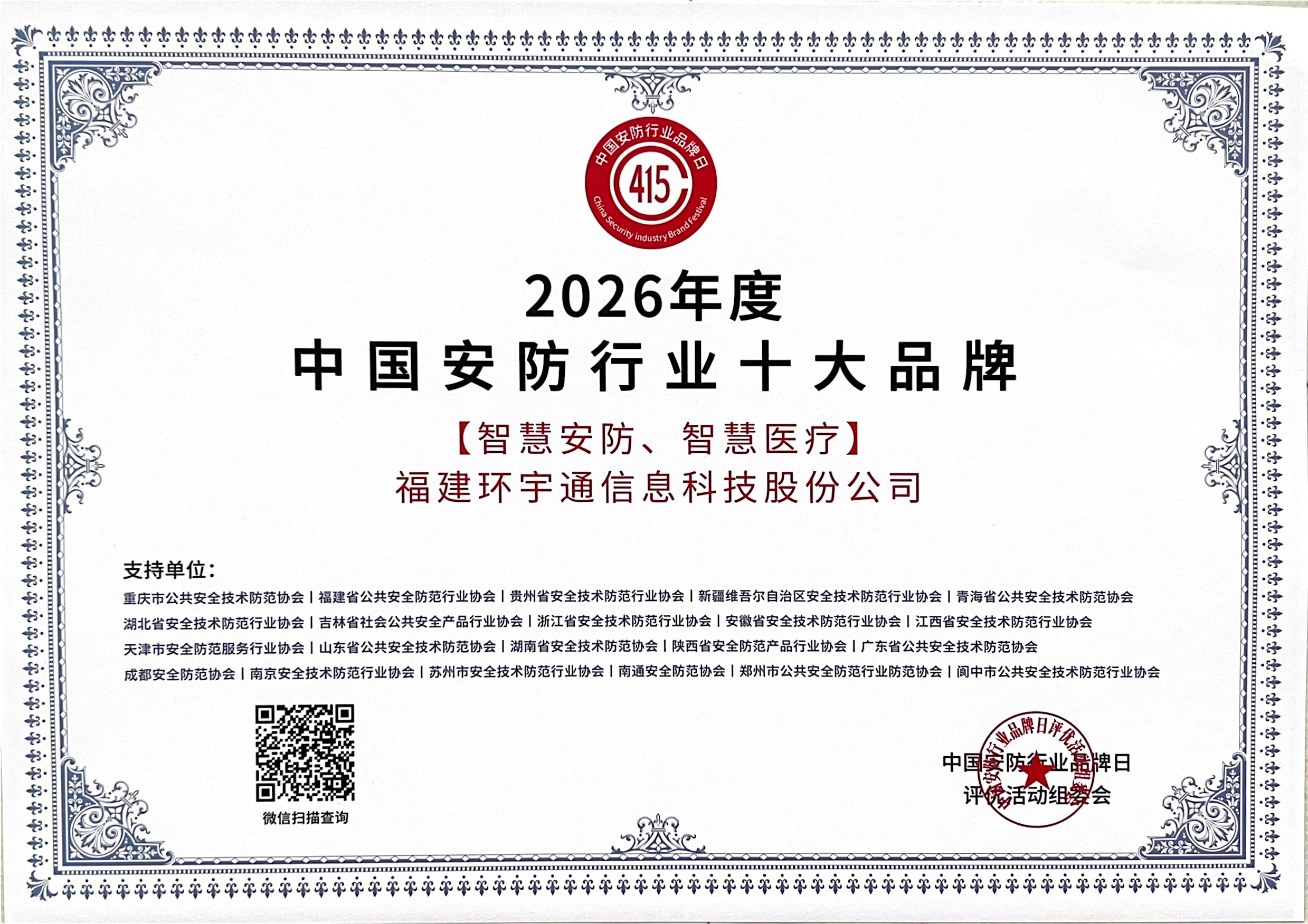 福建环宇通公司旗下品牌MEEYI美一,获评「2026年度中国安防行业十大品牌」,凭借稳定的产品品质、全链条研发能力与广泛的市场认可度,跻身行业标杆行列;