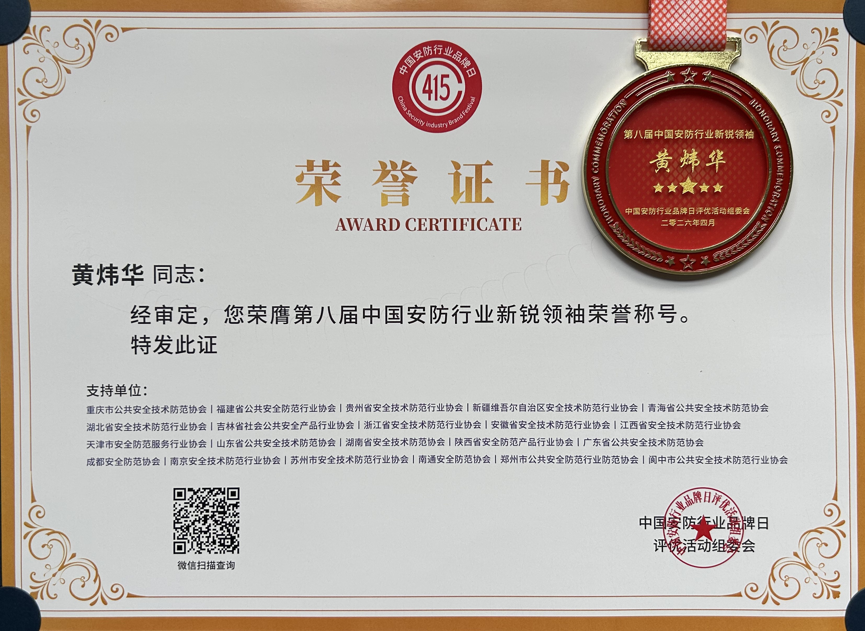 环宇通董事副总经理黄炜华,荣膺「第八届中国安防行业新锐领袖」,表彰其在企业管理与行业创新中的突出贡献。