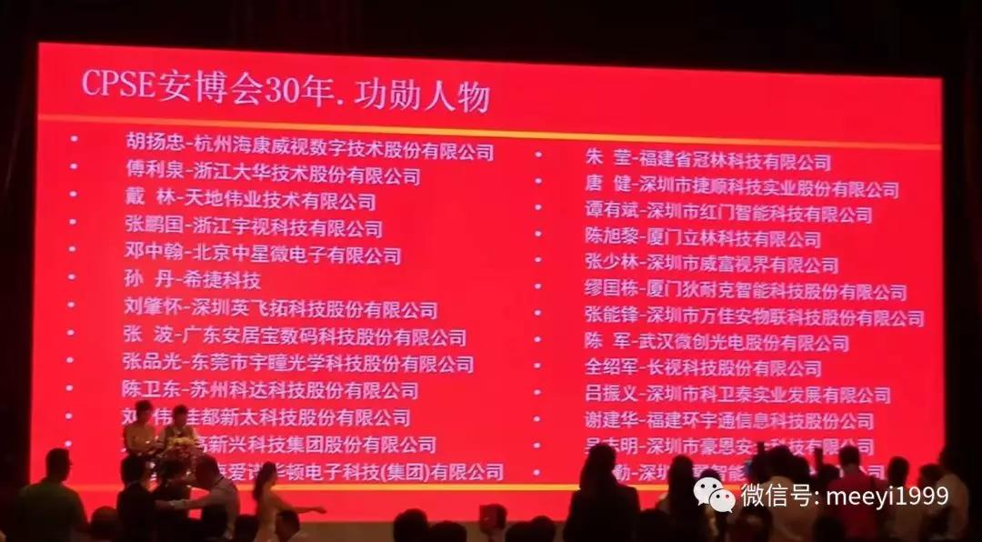 10月28日晚,在深圳大中华喜来登酒店隆重举行的全球安防盛典上,我司董事长谢建华先生荣获“CPSE安博会30年功勋人物”大奖,同时福建环宇通荣获了“CPSE安博会创新百强企业”这一殊荣。